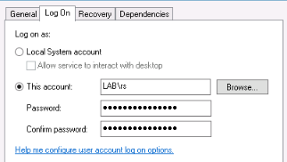 Under Log on as, click This account.